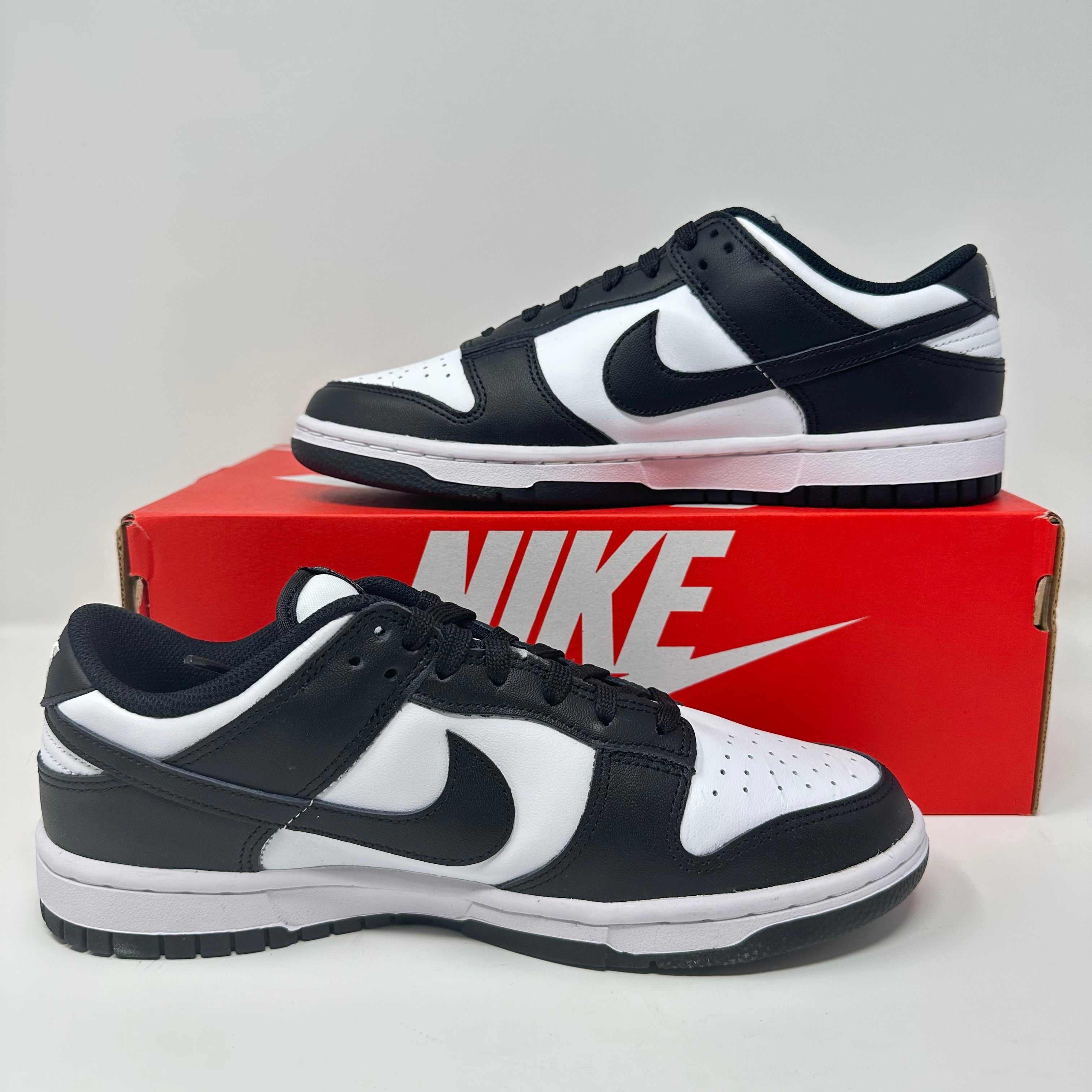 Nike Dunk Low Retro White Black Panda (Women's) sneakers deliver a timeless, street-smart look with everything you expect from Nike's iconic Dunk silhouette. Brand new with all included accessories, this Panda-colored edition pairs white and black overlays for a striking, versatile appearance that easily elevates any outfit.